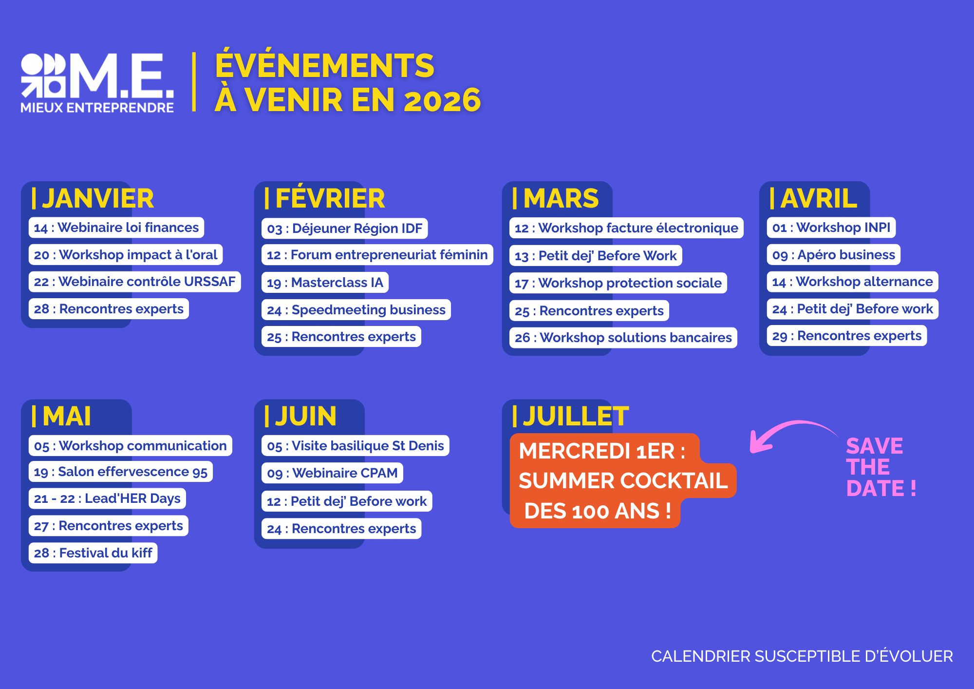 Évènements à venir Billetterie Weezevent Save the date ! Évènements passés Afterwork MExchange Dakar : retours d’expérience des promotions 2023, 2024 et 2025 Évènements passésMEXCHANGE Petit-déjeuner audonien : découverte du restaurant 15 Porte de Droite à Saint-Ouen Évènements passésEVENEMENTSENTREPREN'HER Croissance+ Entrepren’HER – atelier Design Thinking Évènements passésCROISSANCE+ENTREPREN'HER Croissance+ Entrepren’HER – bootcamp leadership au féminin Évènements passésCROISSANCE+ENTREPREN'HER Workshop prise de parole : débloquer son impact à l’oral pour renforcer son leadership Évènements passésEVENEMENTS Apéro Winter : plus de 150 entrepreneurs réunis pour clôturer l’année et développer leur réseau RELATIONS PRESSEÉvènements passésEVENEMENTS J’entreprends à Epinay – mardi 09 décembre 2025 Évènements passésEVENEMENTS Voir plus CHARGEMENT
