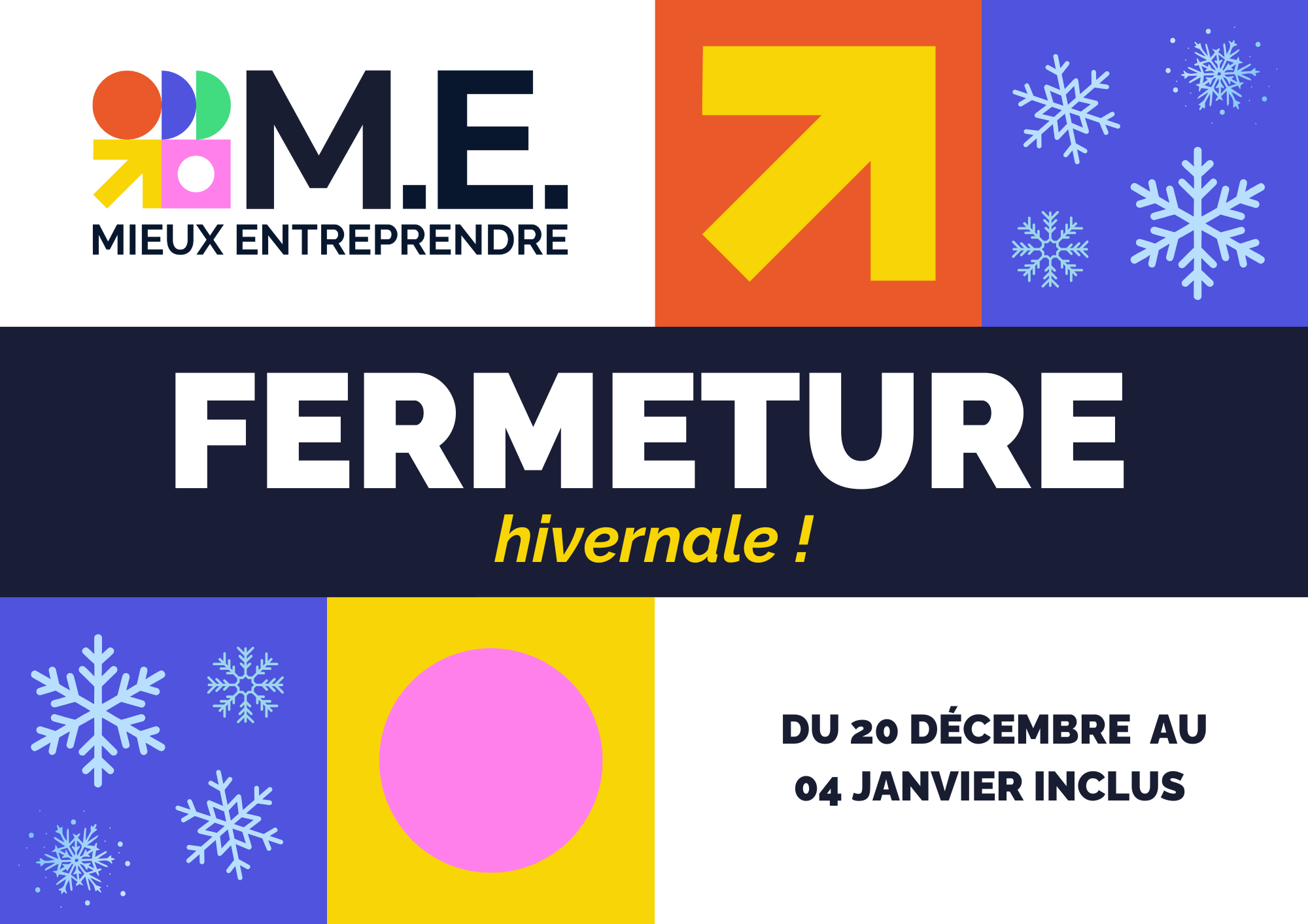 Mieux Entreprendre sera fermé du 📅 20 décembre 2025 au 4 janvier 2026 inclus.